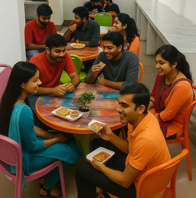 The cafeteria at Omkara College of Professional Education is more than just a place to eat—it’s a space where students connect, unwind, and enjoy fresh, quality meals. Designed with comfort and cleanliness in mind, our cafeteria offers a wide variety of affordable food options to meet the diverse tastes of our student community.
